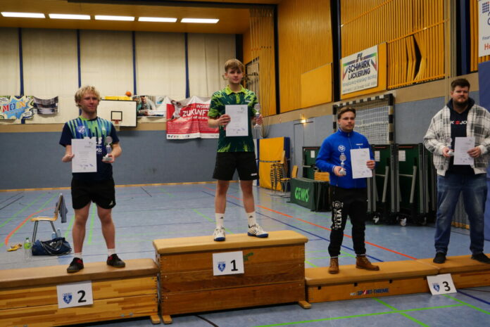 Das Podium im Einzelwettbewerb mit Sieger Laurin Struß und Vize Mio Wagner. Foto: Marc Wagner (hfr)